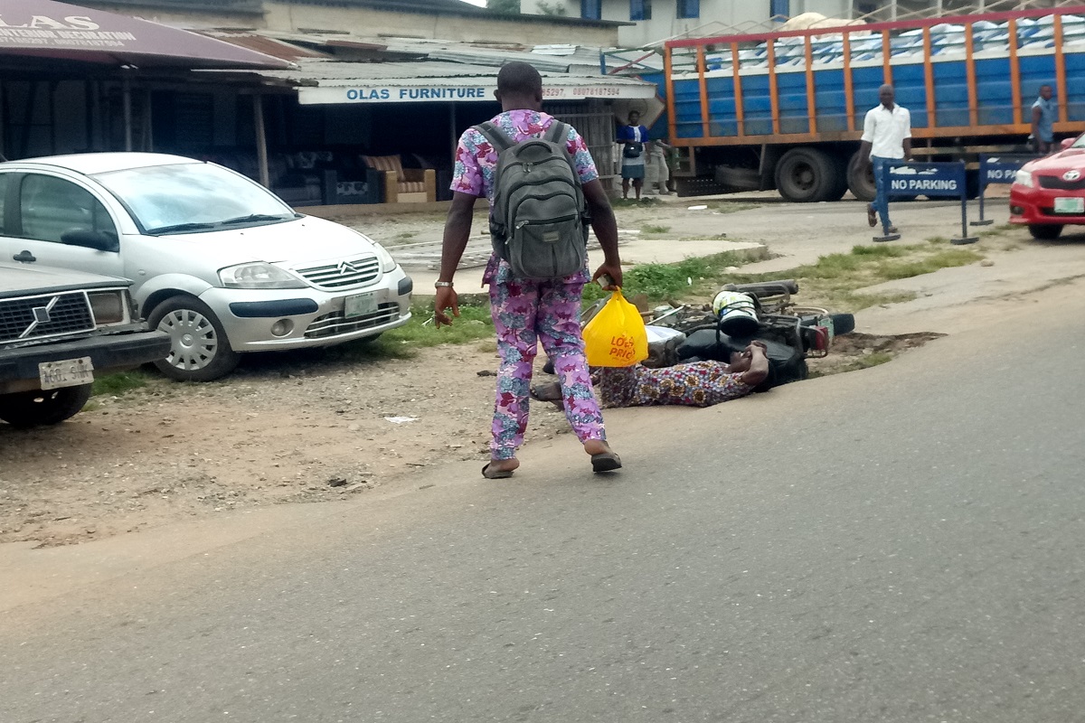IbadanCityAnnouncer reporter who was on assignment witnessed the accident. The accident which involved a blue rave 4 and Okada rider, the driver of RAVE 4 Jeep was making an impromptu U-TURN in the middle of the road to avoid the long stretch of hold up from JAllen area down to Iyagangu area toward Alesinloye-GRA Quarter intersection Ibadan when he suddenly hit an oncoming Okada rider who was coming on high speed riding toward JAllen Dugbe Area Ibadan.
